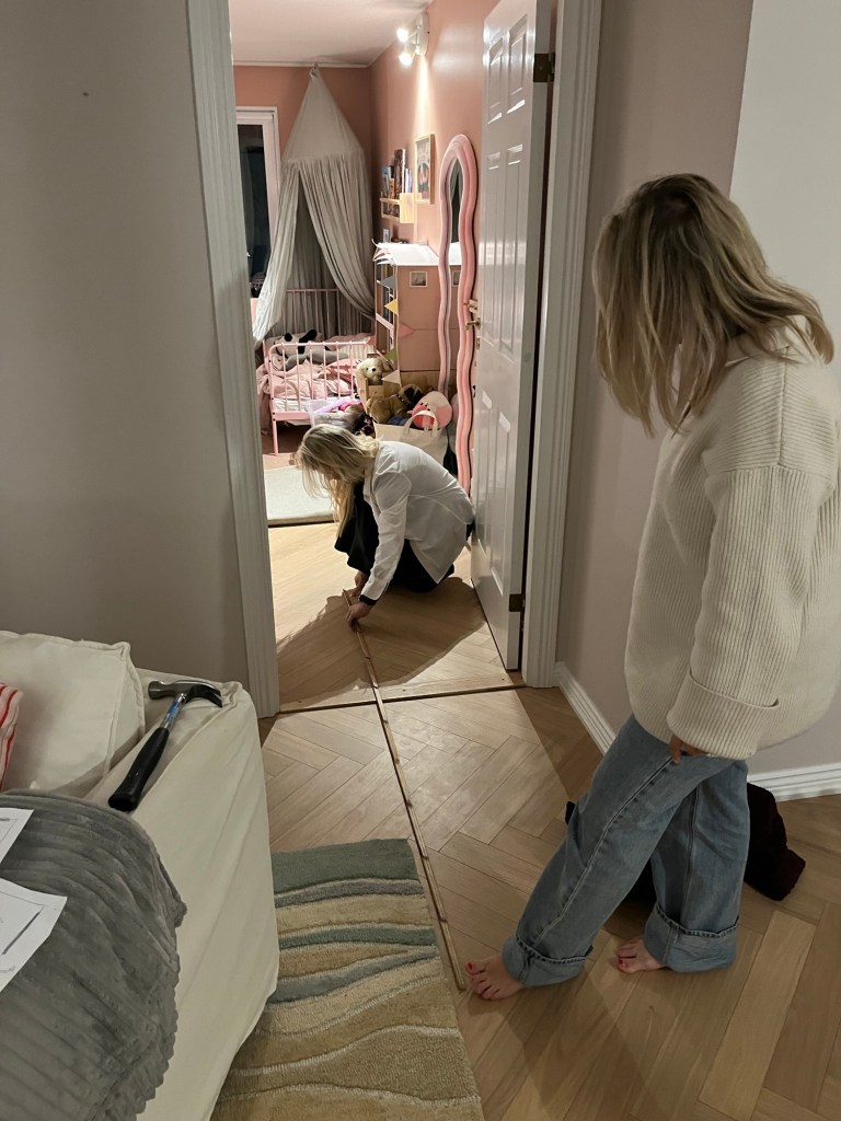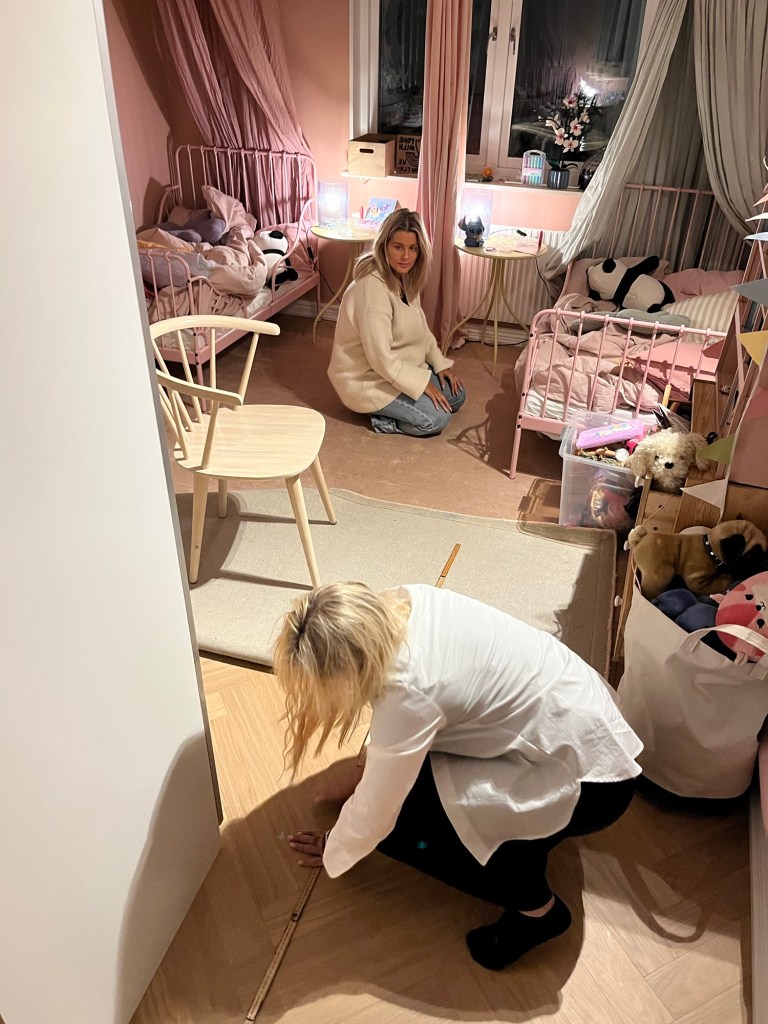 Hem till Hanna för att mäta vägg. En vägg som ska rivas och tre nya ska byggas upp.