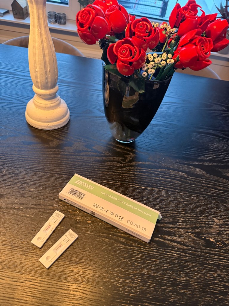 Viggo är fortfarande sjuk så köpte på mig Covid-19 test till oss alla. Lika bra om Viggo skulle visa sig ha viruset.