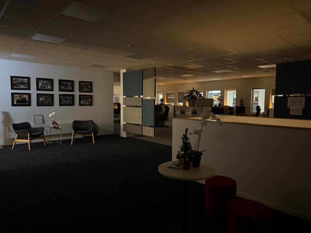 Kom först till kontoret på plan 2 idag. Helt mörkt och rätt mysigt så försökte jobba med taklampan släkt men det gick inte så bra så lysrören fick slås på.