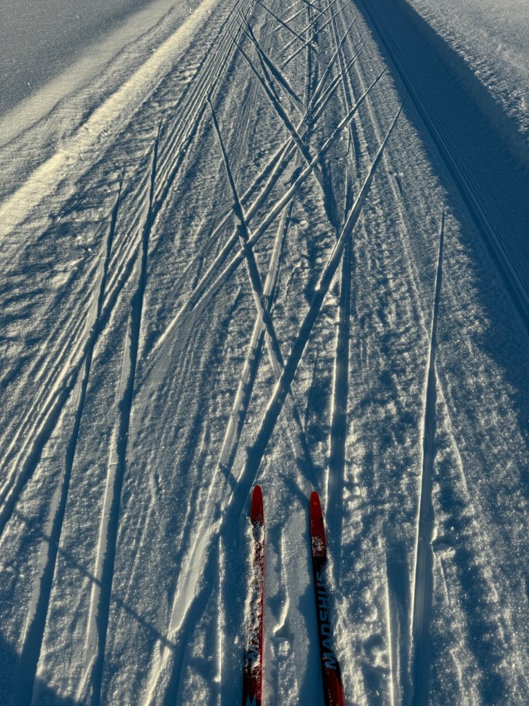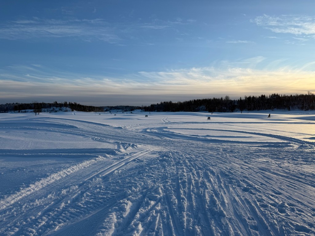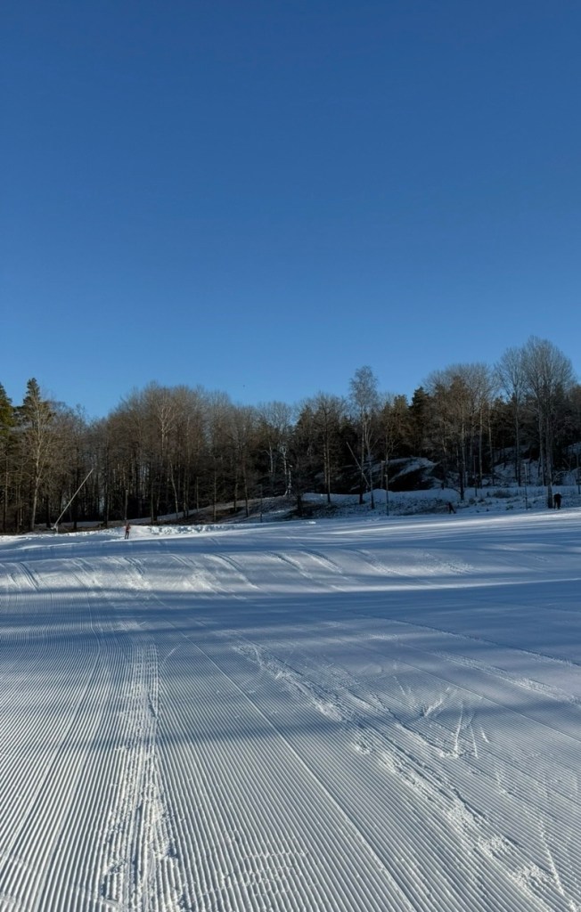 Håvade in 4 km på strax under en timma. Jag var verkligen Bambi på hal is den första kilometern men sen kom jag in i det. Ganska många åkte längdskidåkning men i skate spåret var det inte alls lika många.