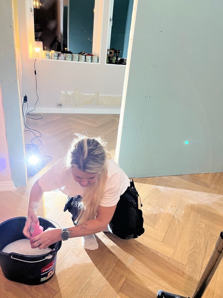 När man har städmani så åkte skurhinken fram innan alla väggarna var färdig gipsade, men jag hade panik över allt byggdamm.