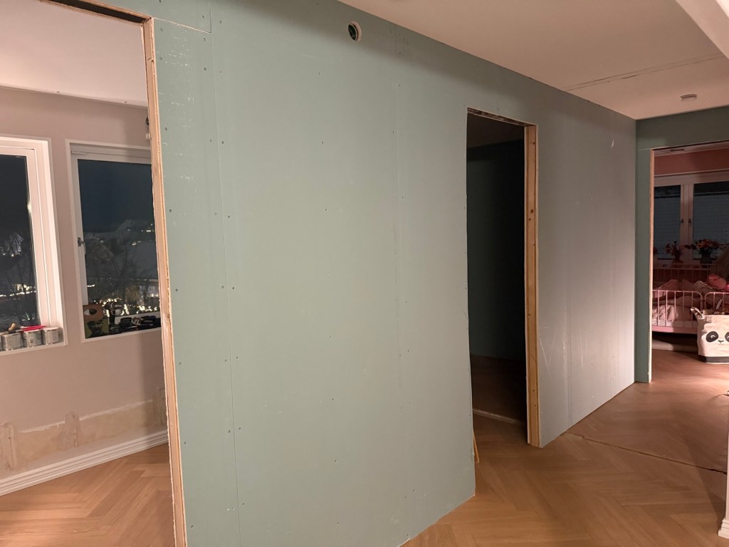 Efter 8 timmars jobb var vi klara och nu är det målarens tur att spackla, slipa och måla. Då kommer jag hålla mig borta (pga byggdammet och den opfroffsiga skruvningen).