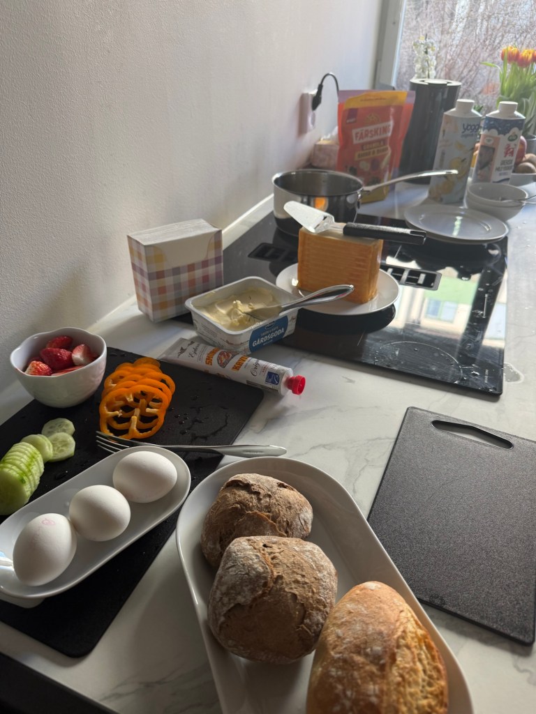 Vi startade med frukost, som var mer som en hotellfrukost med hemmagjord juice, yoghurt och färska frallor.