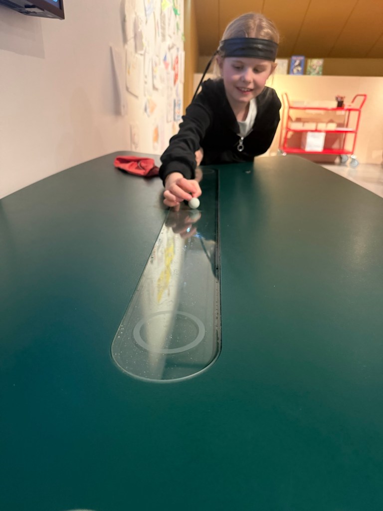 Där kunde man mäta styrka, gå balansgång, hänga i ringar, testa käpphästar, mäta syresättning, få en boll att rulla med sin egen tanke, men även läsa om olika sporter. Poppis museum för tjejerna.
