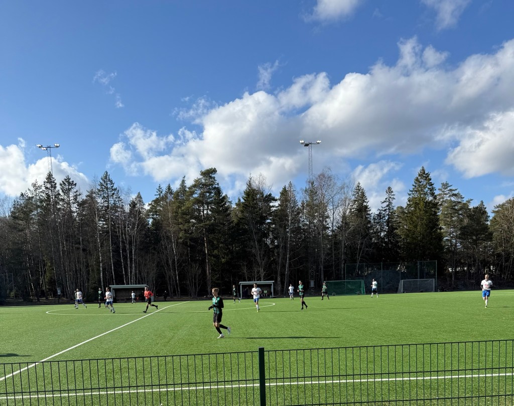 Den här dagen har trots sömnbrist rullat på med fotbollsmatch för sönerna med mamman som publik.
