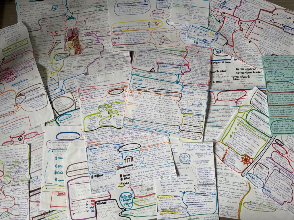 Lite mer städning och rensning idag och hamnade i lådan med teckningar, barnens gamla prov, skolböcker och mina mind-maps när de skulle ha ett prov eller ett läxförhör. Allt från människokroppen, religion till ekologi och Östersjölära.