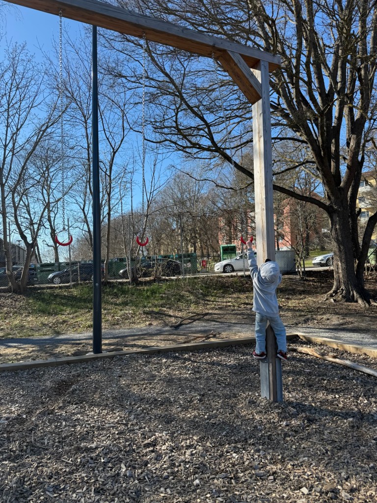 Sedan vidare till innebandyträning med tripp, trapp och trull och därefter bokades resten av dagen upp med lekparker.