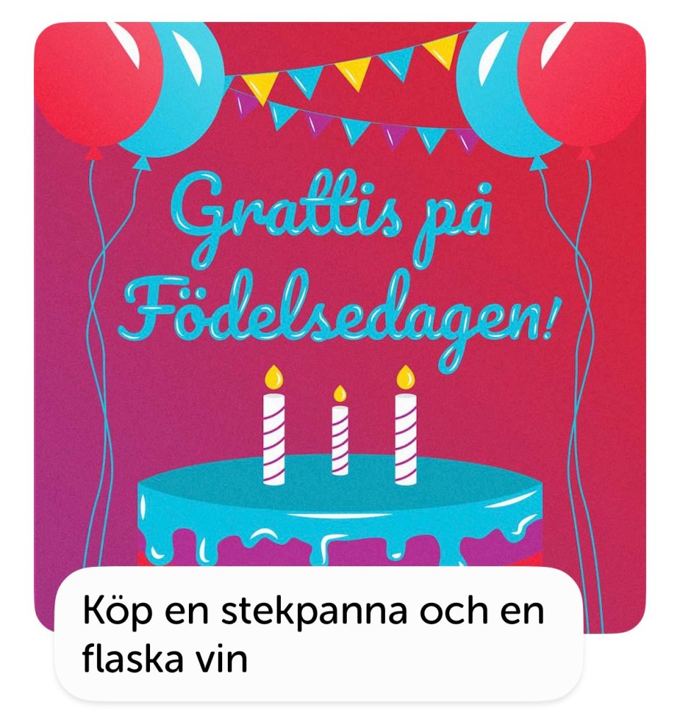 Plus ett swish-presentkort som inte finns med på bilden ovan (från Elias) 😂