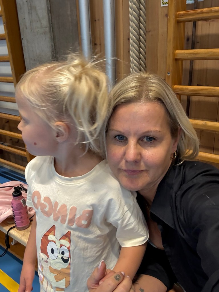 Blev handbollsträning med Tea på eftermiddagen och i samband med det, lek och tävling med Alma. Hon ordnade med olika tävlingar för oss två, som att hänga längst i en ribbstol, hoppa runt salen på ett ben och rulla en boll mot en plats.