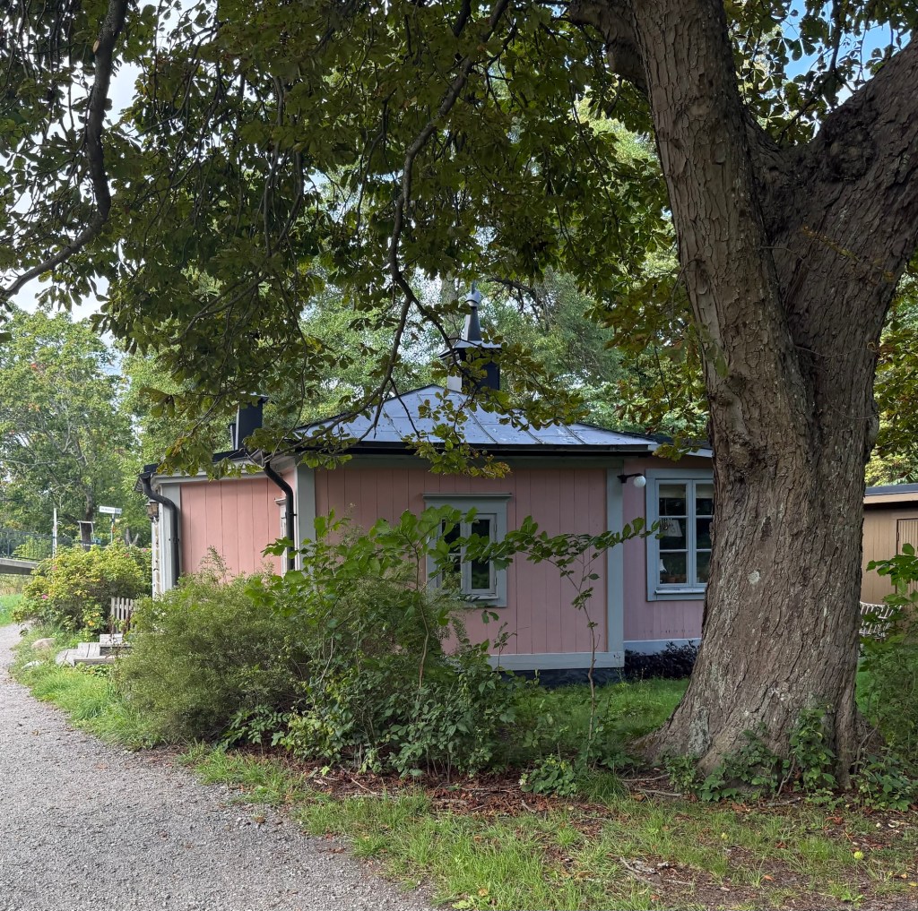Det blev en lunch promenad och helt plötsligt dök ett litet hus upp och det skulle kunna vara HannaHappys rosa sommarstuga. Så gulligt!