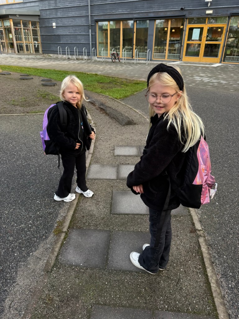 När jag var påväg hem från löprundan så mötte jag de här små söta skolbarnen. Vilken bonus när det är Almas födelsedag.