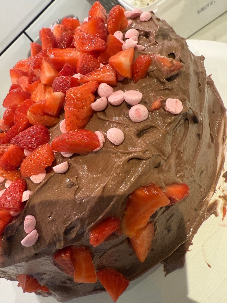 Fick kalasa på en hemmagjord chokladtårta med hallonmousse. Supergod och supernöjd tjej som nu är 6 år.