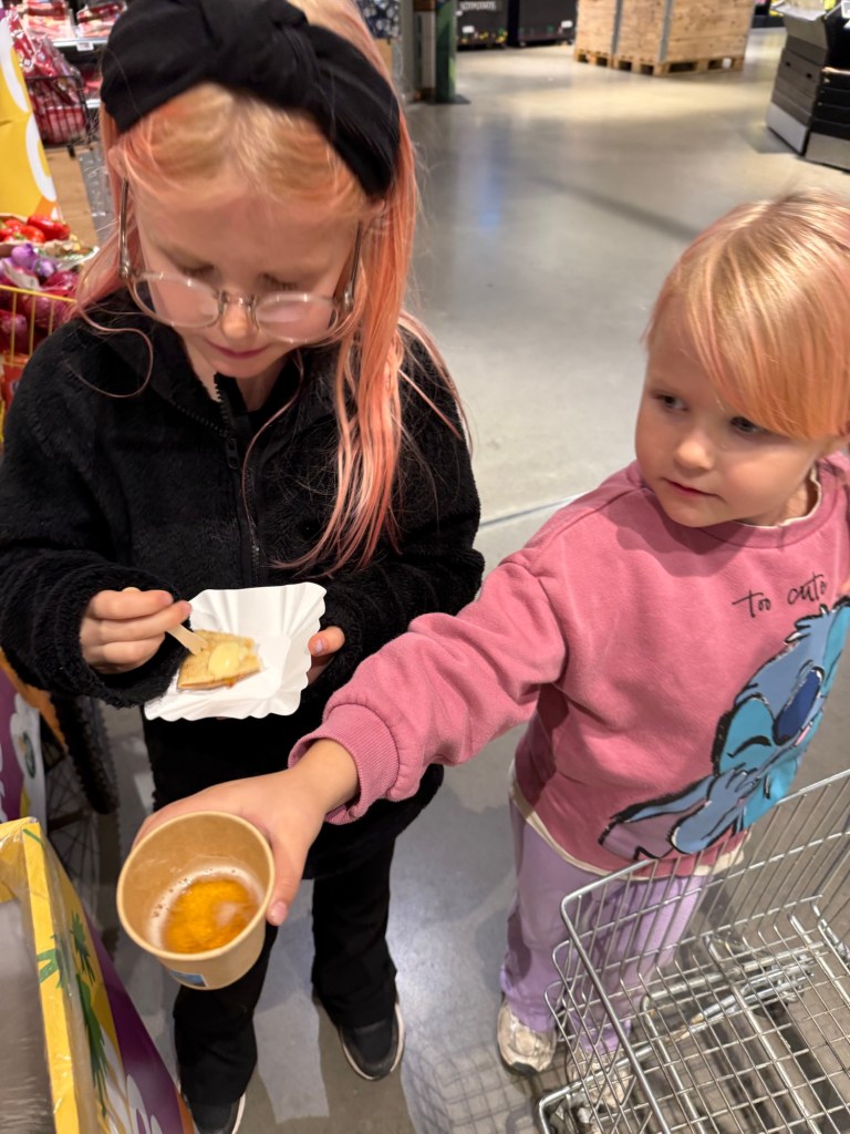 På Coop blev det även provsmak av en tacovariant men Alma, som inte tål mjölk, fick nöja sig med en provsmakar öl (alkoholfri förstås)