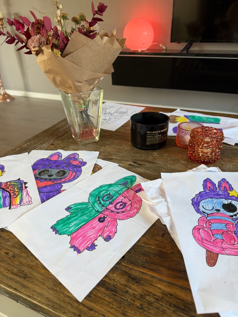 Tjejerna vaknade tidigt i morse men de startade morgonen med att rita teckningar på löpande band.