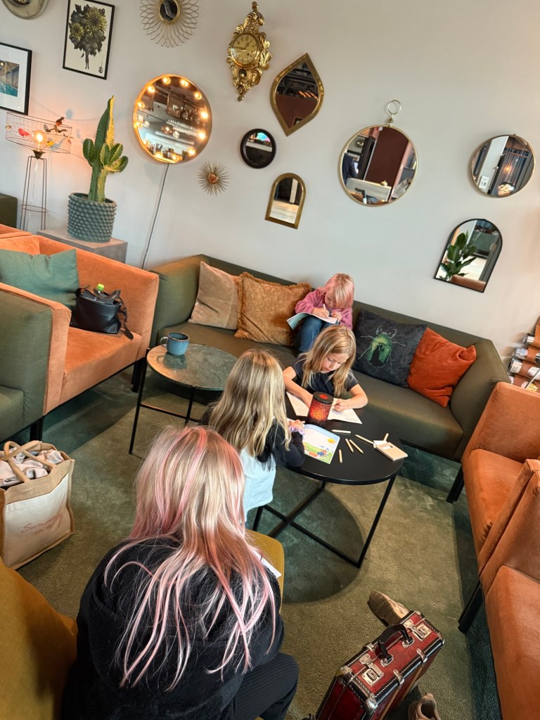 Vi fick sitta i lobbyn en stund i väntan på att rummet skulle städas klart.