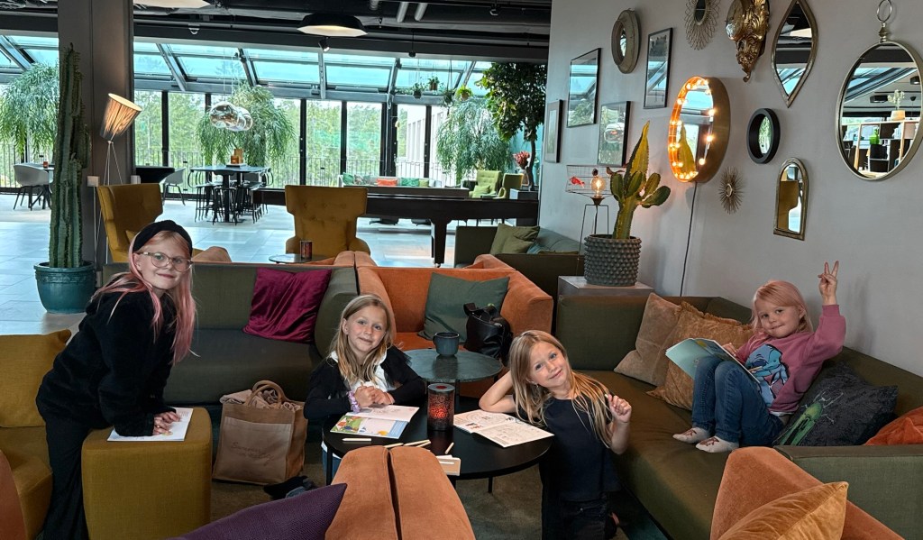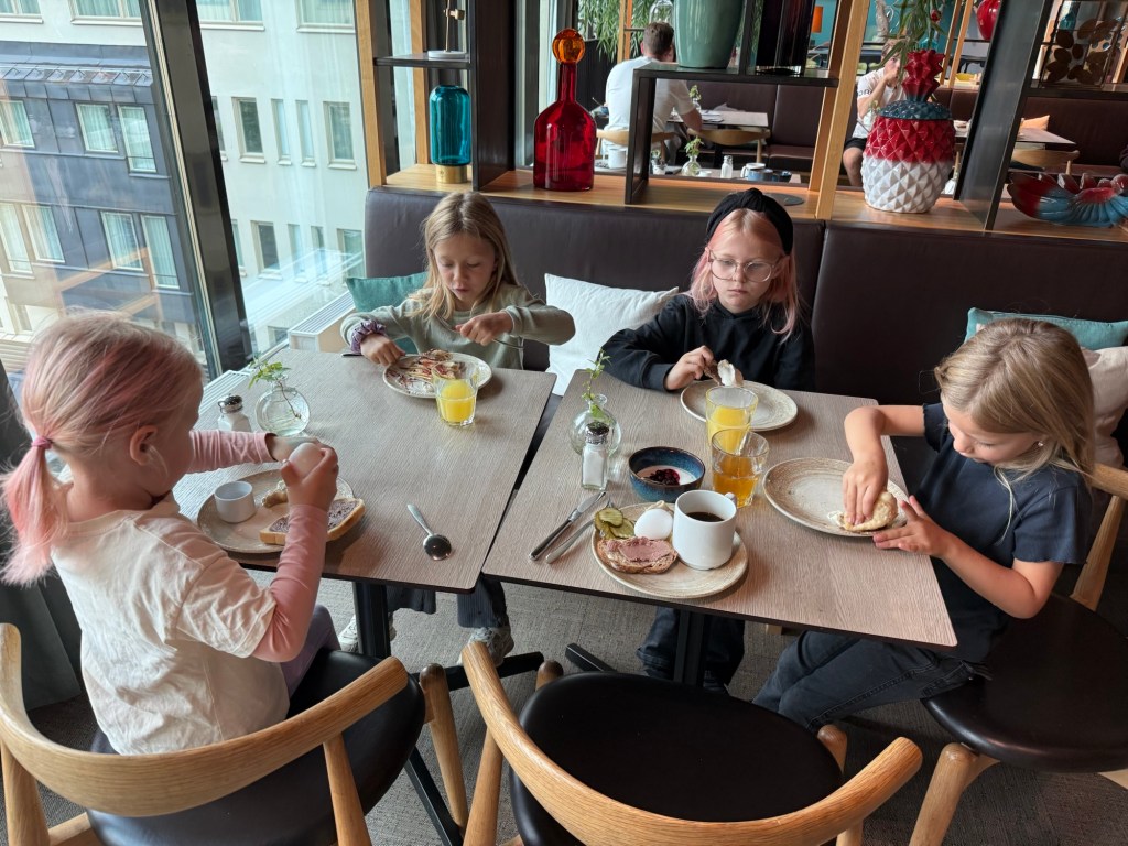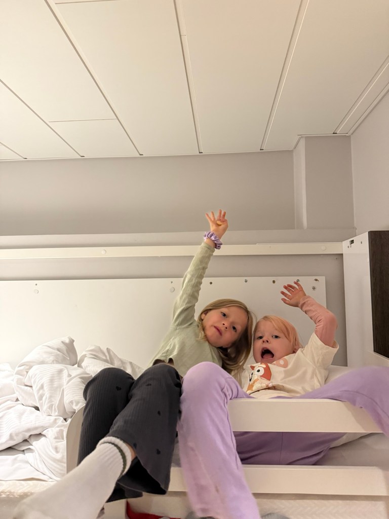 Tippade på att tjejerna skulle vakna tidigt men gänget vaknade vid 7:30.