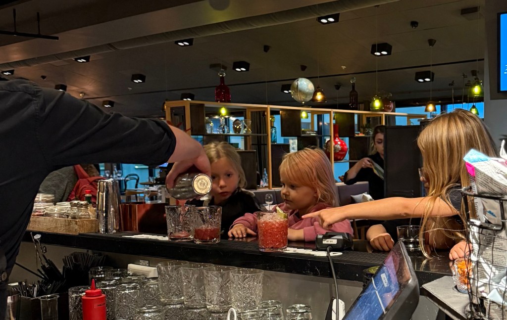 De beundrade bartendern och kommenterade alla hans steg när han fixade drinkarna.