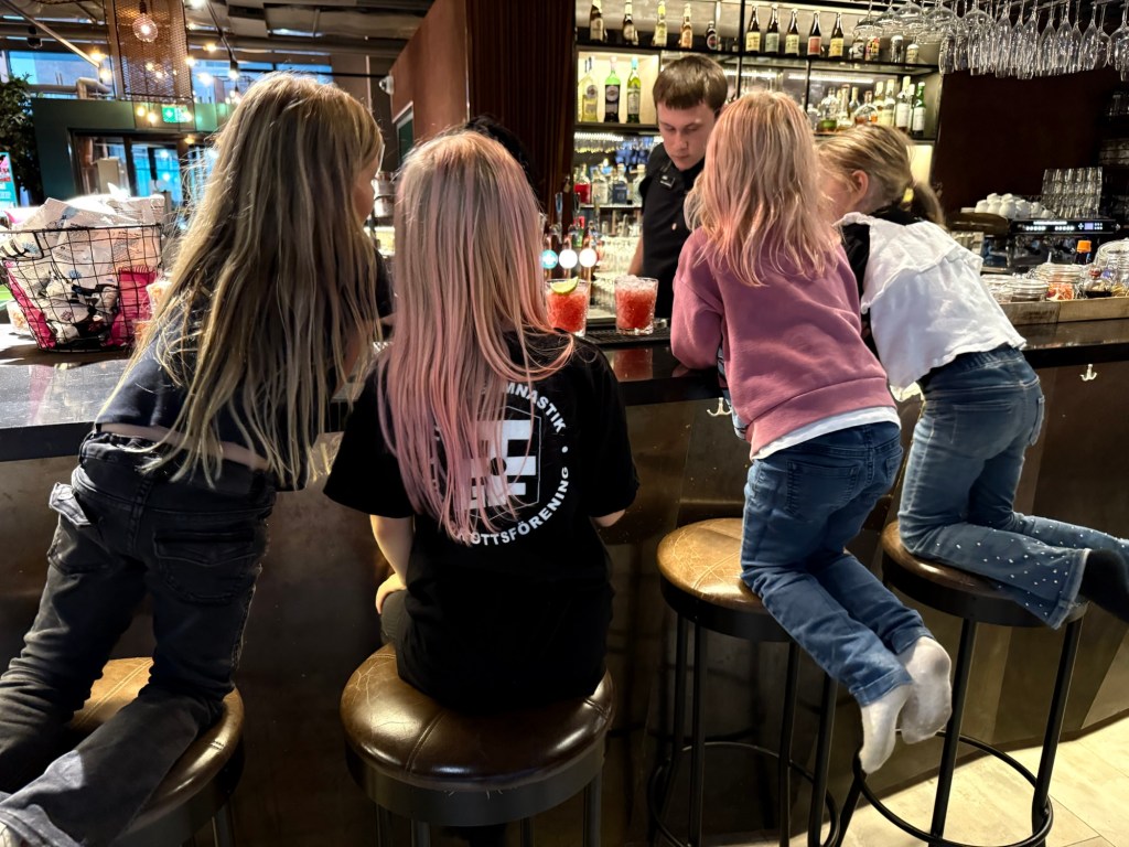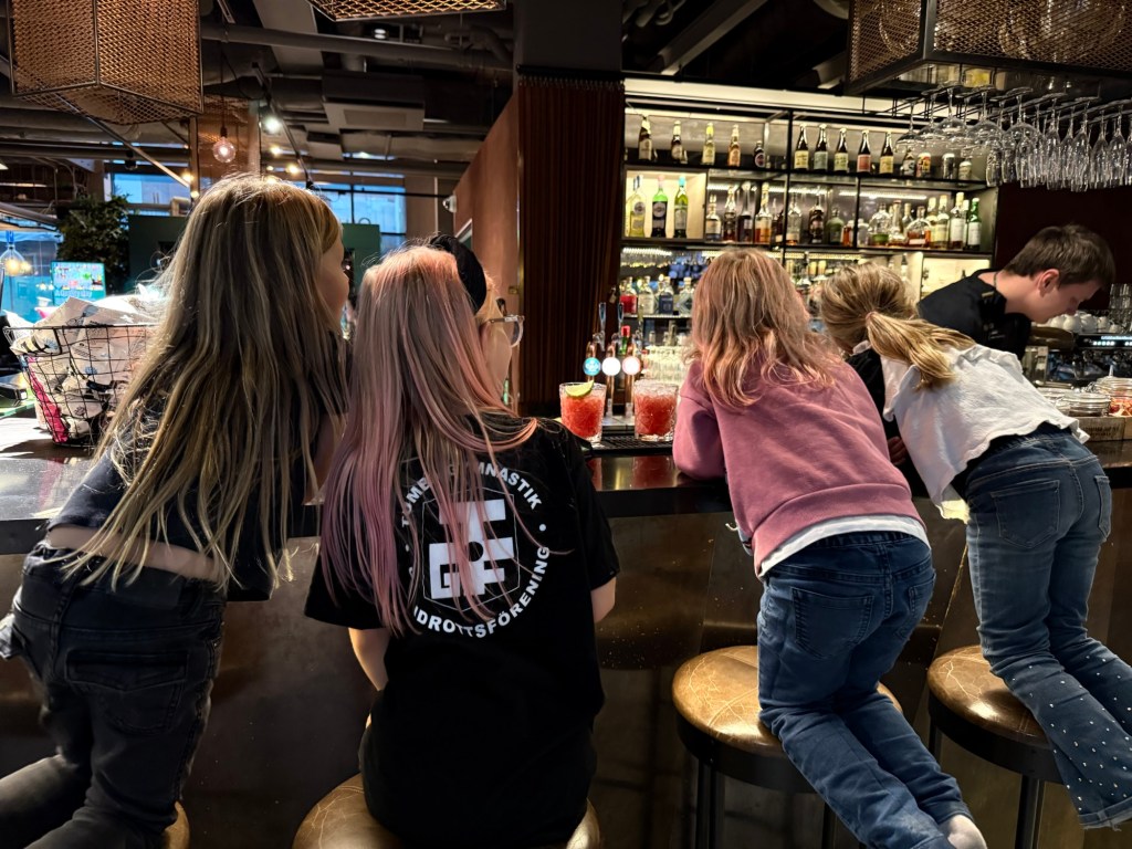 Kvällen avslutades med häng i baren. De fick välja mellan en gul å sur drink eller en röd å söt? Alla valde den röda.