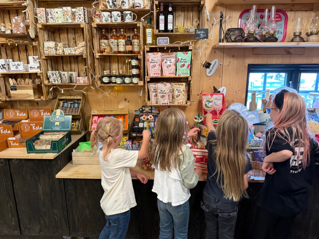 När tipspromenaden var avklarad blev det ett besök i den lilla shoppen med kombinerat café. Så mysigt ställe. Varsin klubba skulle de prompt ha eftersom de själva tyckte att det varit så duktiga under tipspromenaden och så fick det faktiskt bli.