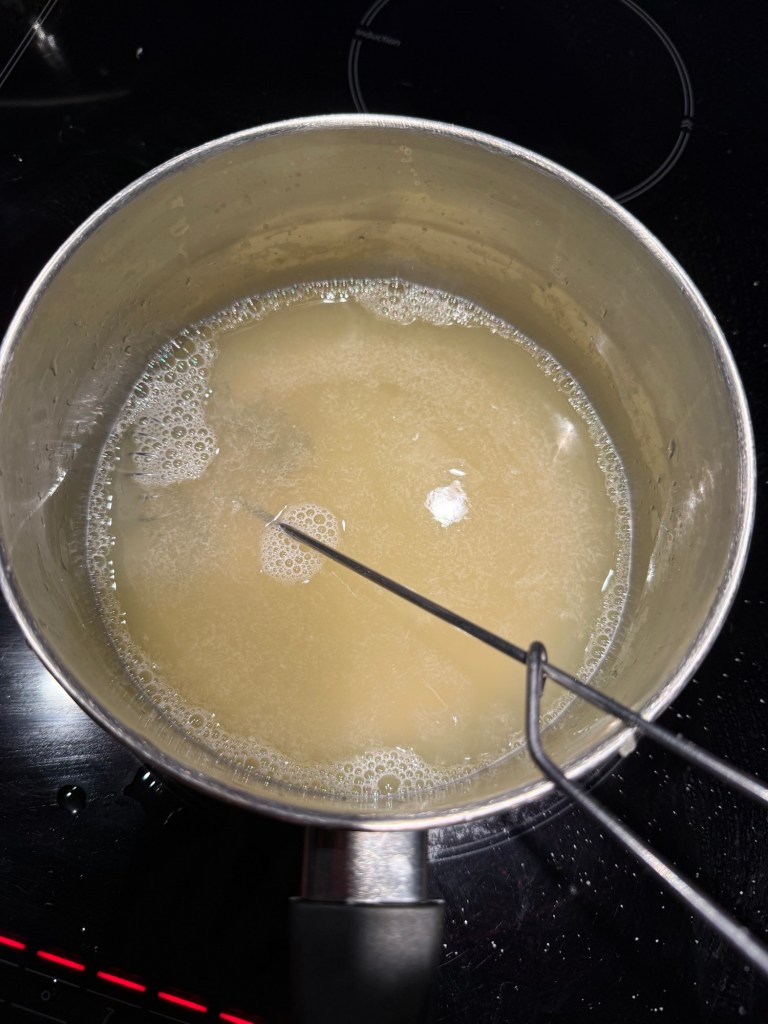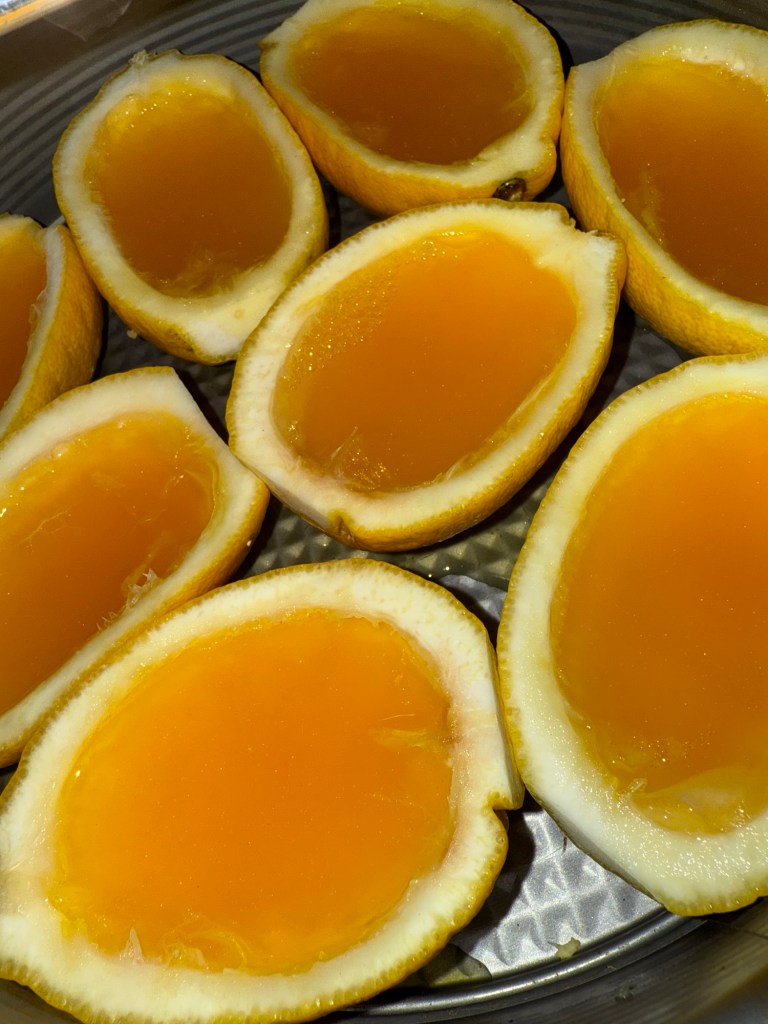 Gröpte ut citronerna och använde saften i kastrullen tillsammans med socker, gelatin och vodka.