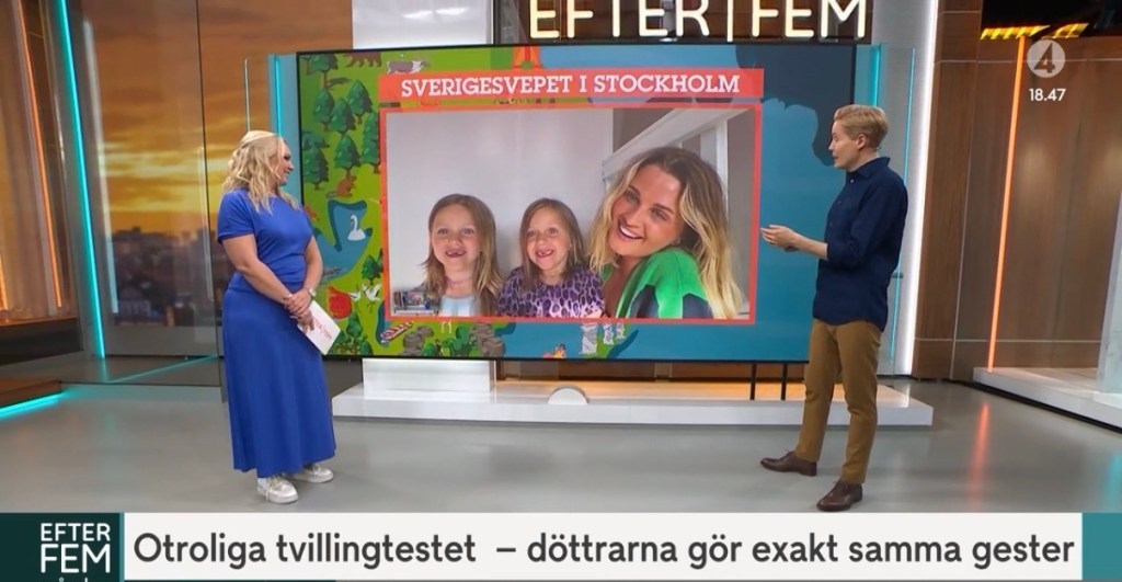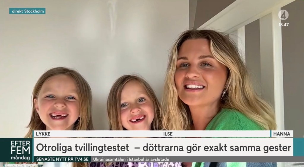 Det märktes redan på BB. Flyttade den ena benet eller armen så gjorde den andra exakt lika. Det mesta gjordes som i ett eko.