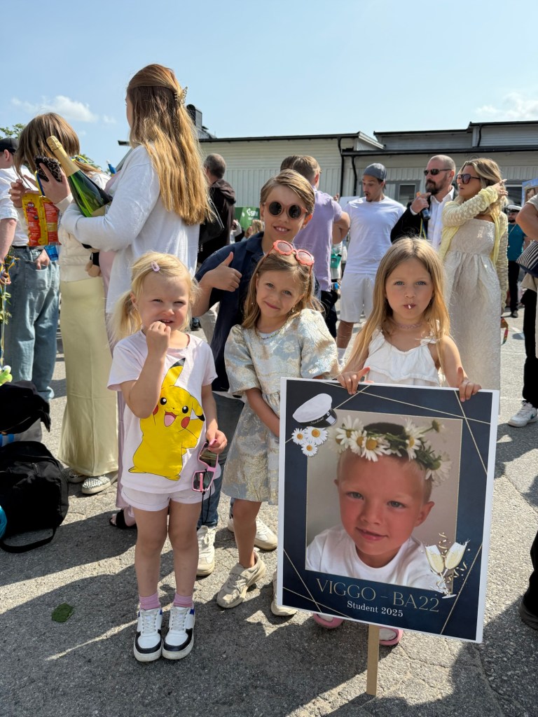 Jag hade med mig Tea, Alma, Lykke & Ilse till den ena studenten och vi hamnade förstås i köer på E4:an då det blev värlsdens längsta bilresa dit och hem. Jag kände mig som en nykter fyllechafför med det här gänget i bilen.