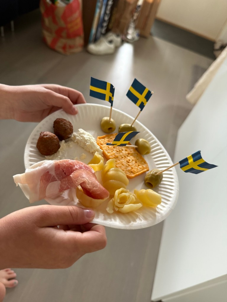 Hade dekorerat maten med flaggor. Ilse tog all man där det satt en flagga, så gulligt. Det var bara att fylla på med flagg-dekorationen.