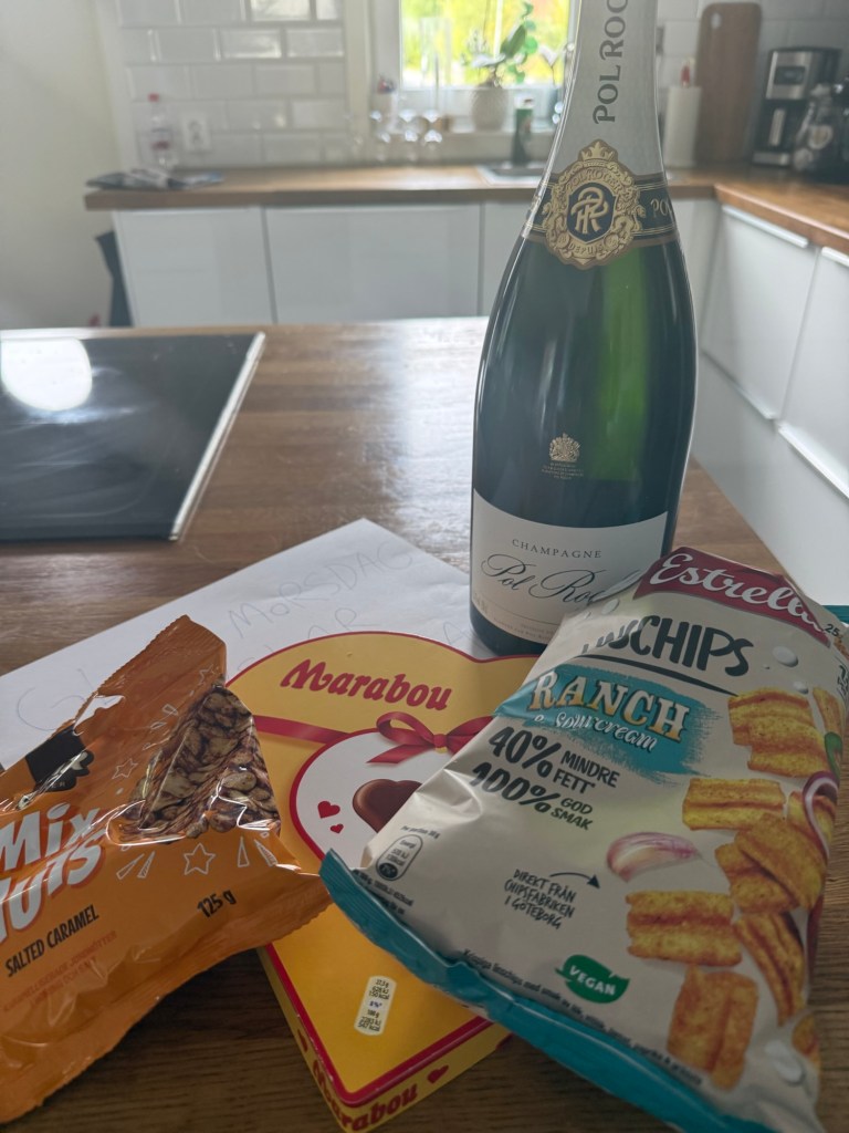 Fick även grattis från de yngsta sönerna som hade skrivit en lapp och samlat ihop några av mina redan festligare inköp här i huset… hahaha….så roliga men ack så fina.