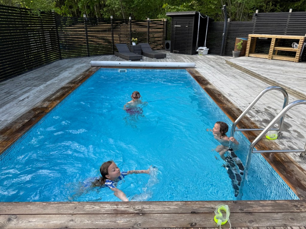 De hann knappt äta frukost innan spa och pool skulle öppnas upp. Premiär bad i poolen i år.