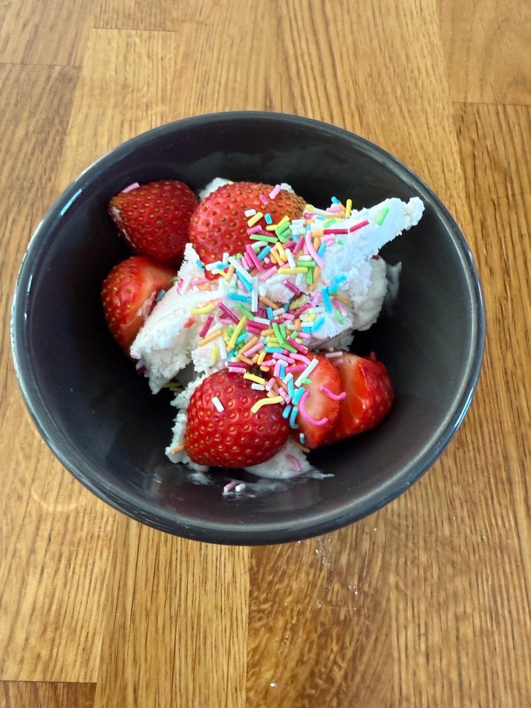 … med bad, glass & jordgubbar.