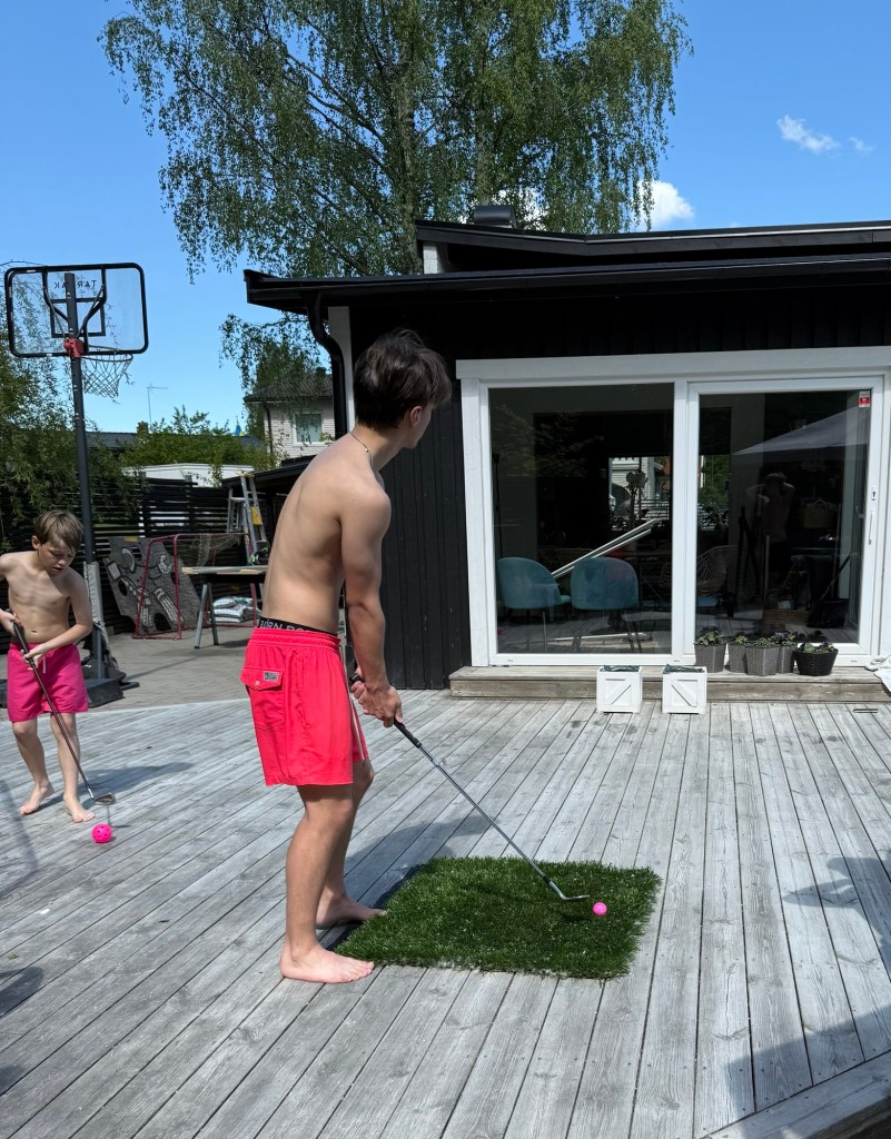 På förmiddagen blev det golf. Syster och jag fick en massa bra tips på våra swingar men framförallt på närspelet.