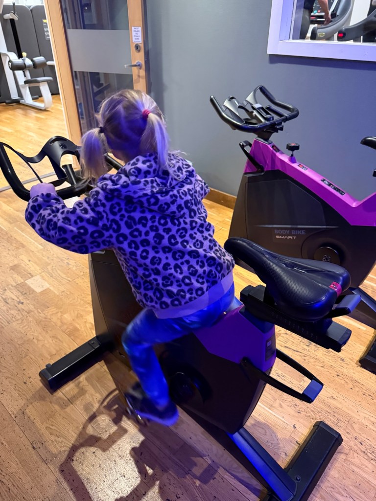 Eftersom hon inte fick följa med till Harald i måndags och titta i mikroskop, och det då blev lite ledsamt, så bokade jag in mig på ett Tabatapass och tog med mig lilla Alma till gymmet.