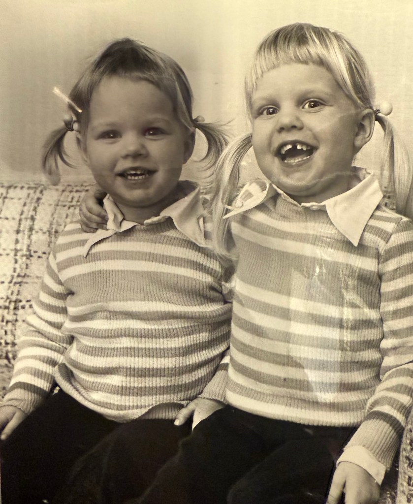 Jag och storasyster som valde att klippa oss själva, sekunden innan fotografen kom.