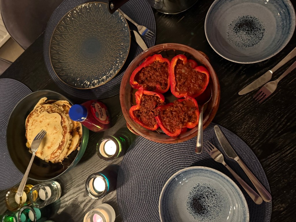 Nu ikväll blev det en kompensations middag efter mitt dåliga samvete för middagen igår. De fick önska sig valfri maträtt, och för Viggo blev det pannkakor och för Elias köttfärs i paprika med ris.