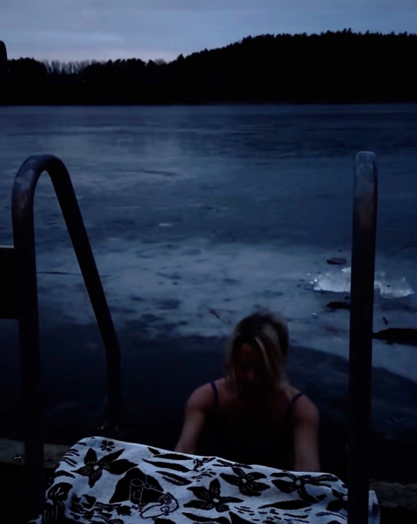 Vid första doppet så var jag nere i vattnet i 2,8 sekunder. Kändes som hela kroppen fick en chock, så fixade inte längre än så. Hanna och Putte var i över 3 minuter var, så grymma. Efter det bestämde jag mig för att ta ett dopp till, då blev det 1 minut, men attans vad kallt det var.