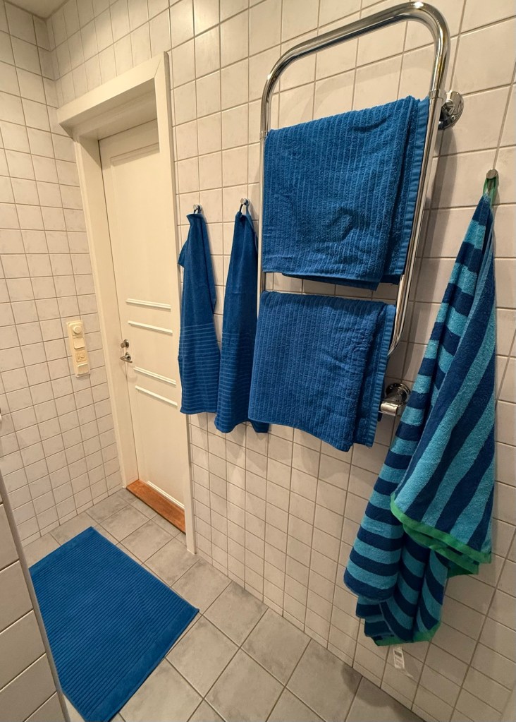 Köpte blåa handdukar och en matta till det lilla badrummet, i en lysande blå färg. Låter kanske sådär men tycker själv att färgen är rätt fin. Blev även en förpackning värmeljus.
