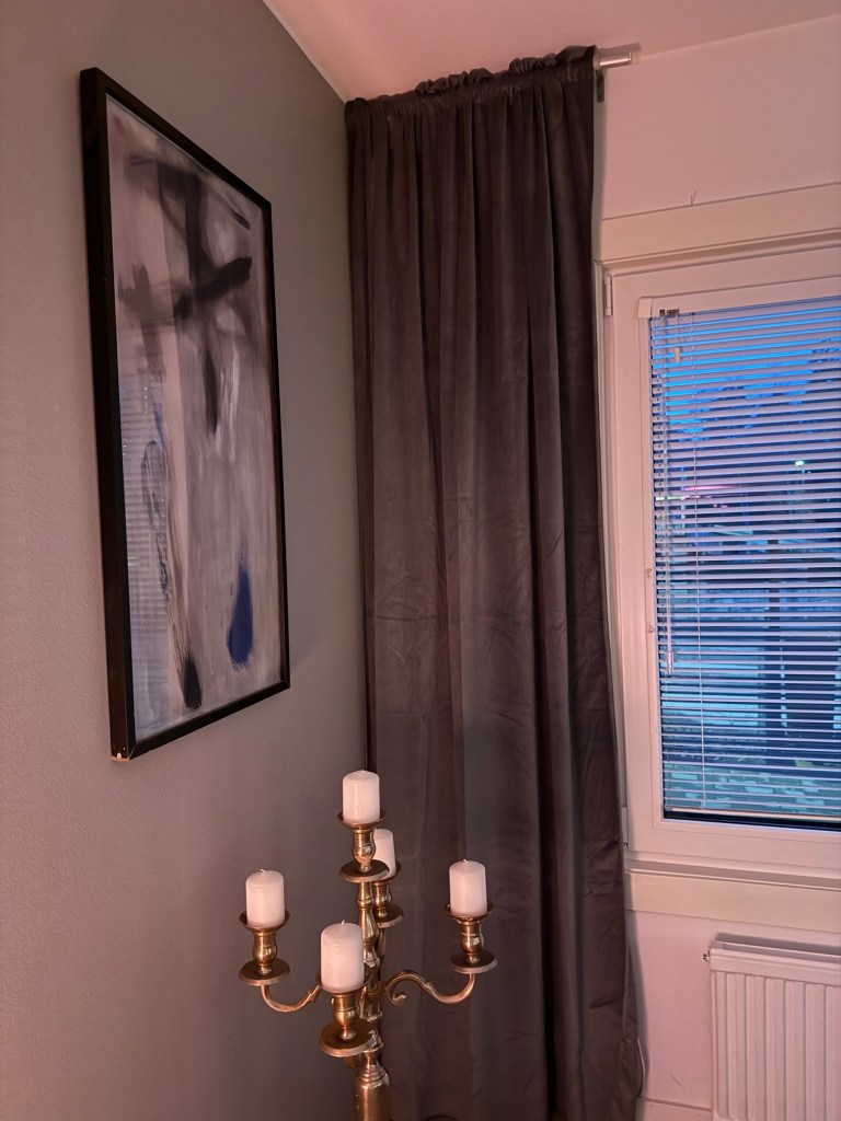 Är inte helt nöjd med mitt gardinköp. Skulle nog ha tagit en ljusare färg, men det kom jag på när gardinerna var på plats.