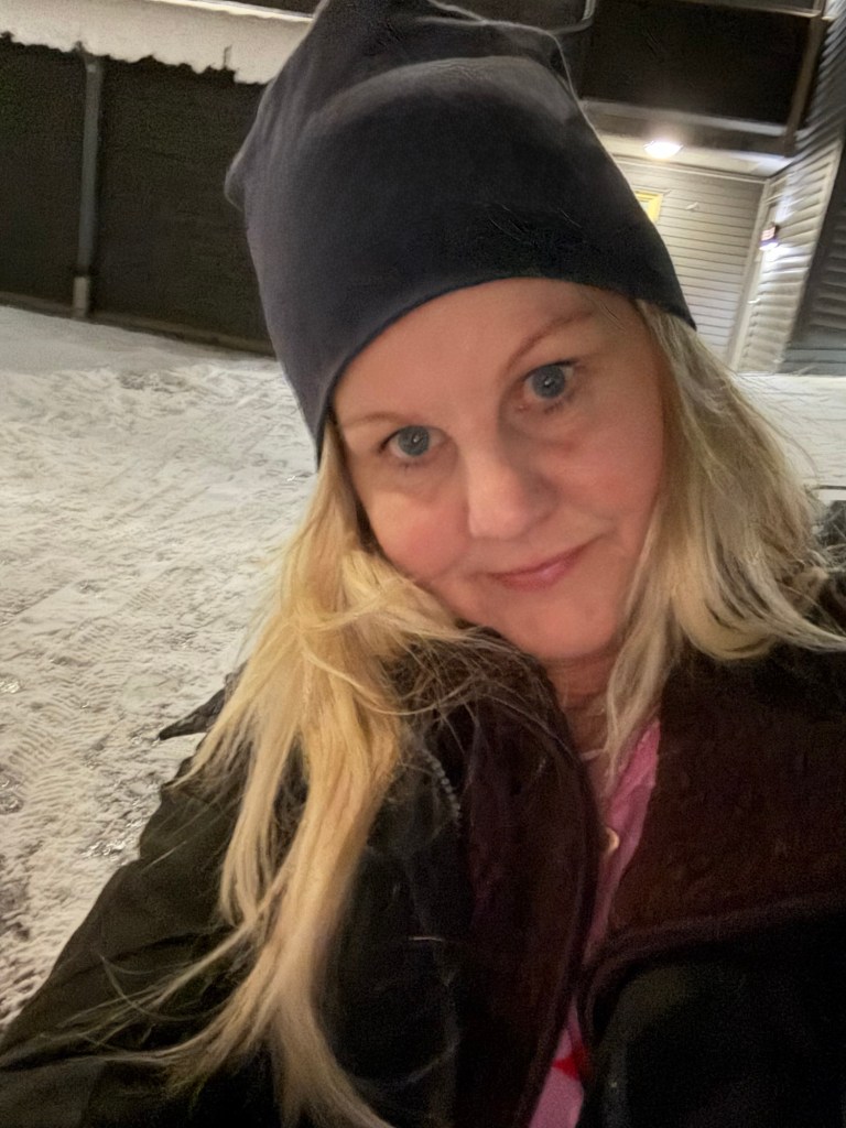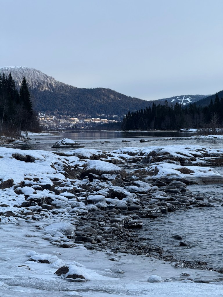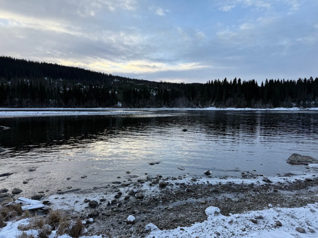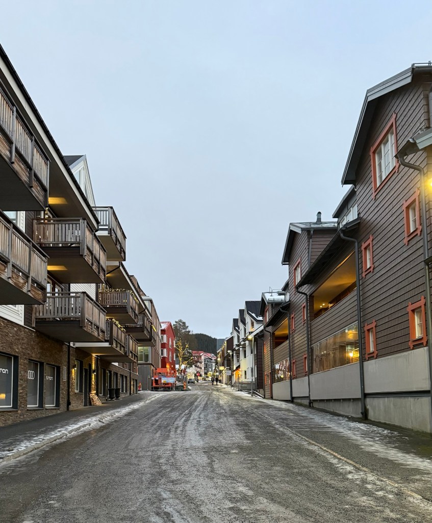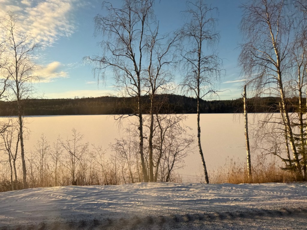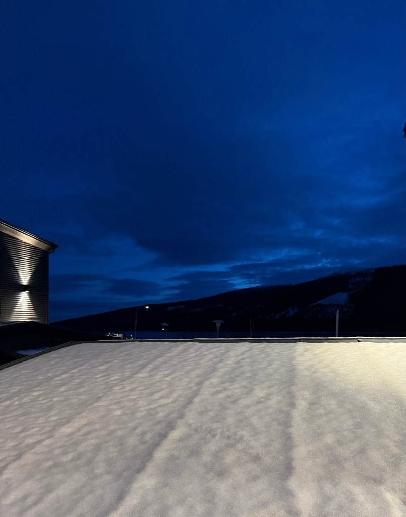 Det finns inte så mycket snö här uppe men desto mer isiga vägar. Man märker även att det är mörkare här än hemma.