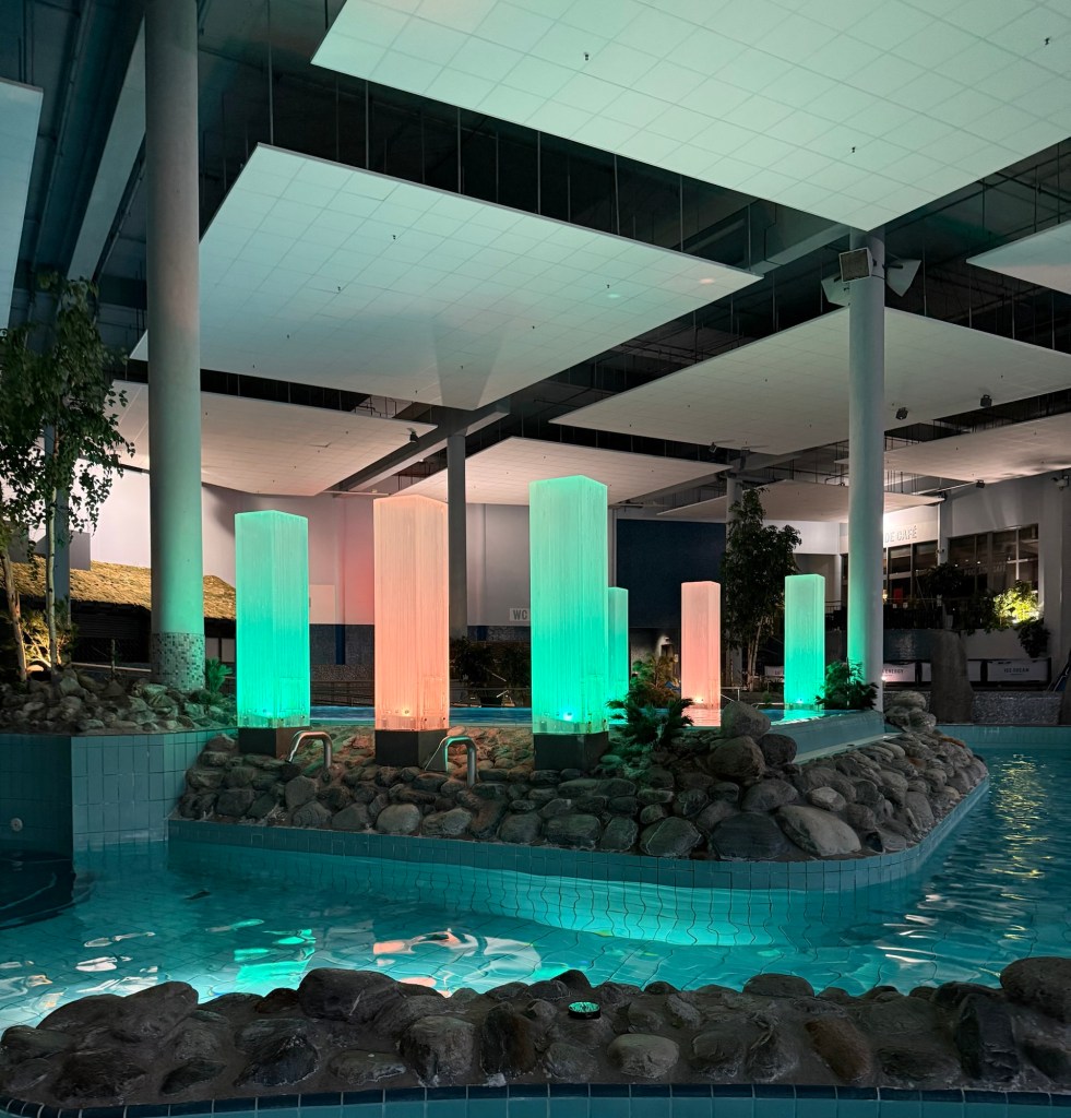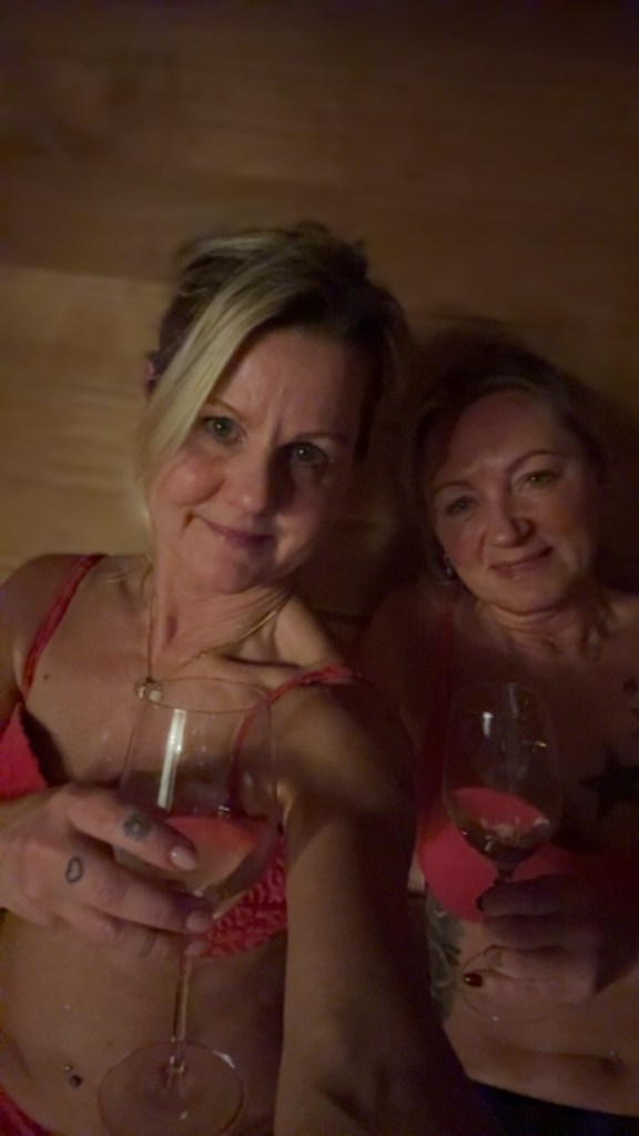 När 45 minuters träning var avklarad (ingen benträningen pga all PW, utan bara överkropp) blev det en vända till spat och bastun.