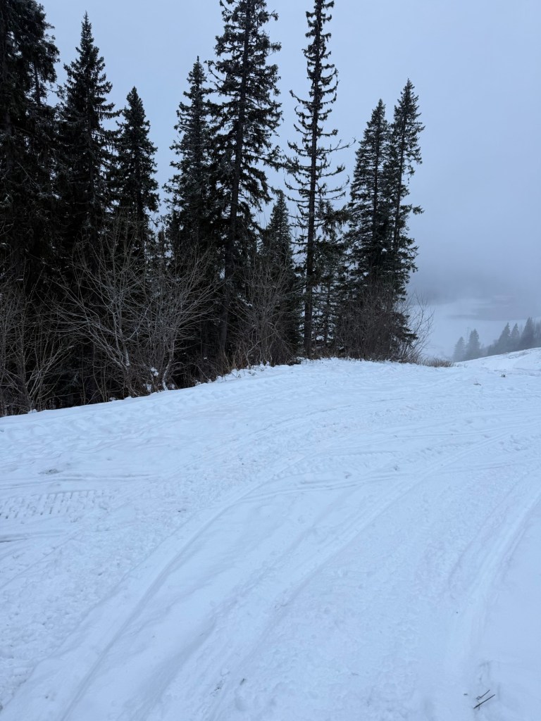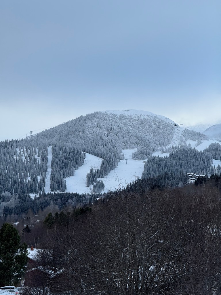 När vi vaknade i morse bestämde vi oss snabbt: dagens mission skulle bli att ta oss hela vägen upp till bergets topp – skidbackens högsta punkt. Först behövde vi bara klara av våra respektive arbetsmöten, men så fort de var avklarade drog vi på oss skorna och gav oss iväg.
