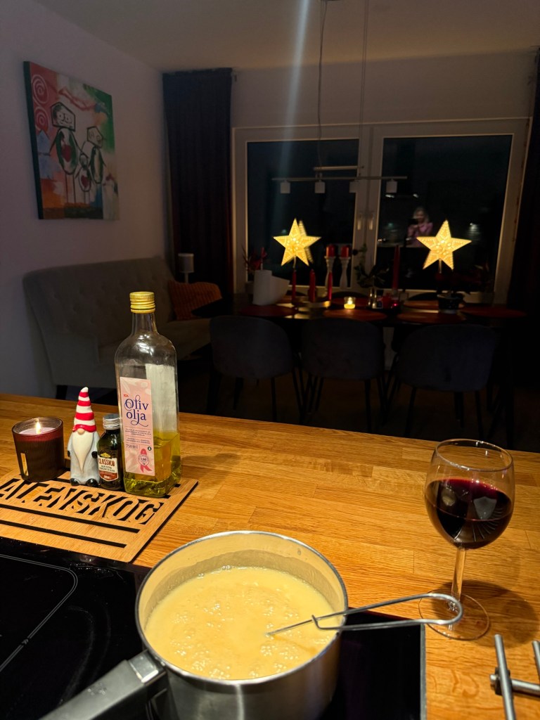Timmarna på kontoret blev fler än tänkt, men det gjorde inte så mycket eftersom det är en hel helg som väntar och även den första advent. Det blev ingen middag ihop här hemma, Viggo var på jobbets julbord och Elias gick till en kompis för att följa kvällens matcher.