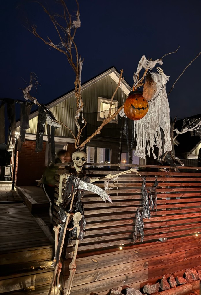 Hann även rota fram lite Halloween pynt. Mer än så här blir det inte i år. Det lär komma plingande barn ändå.