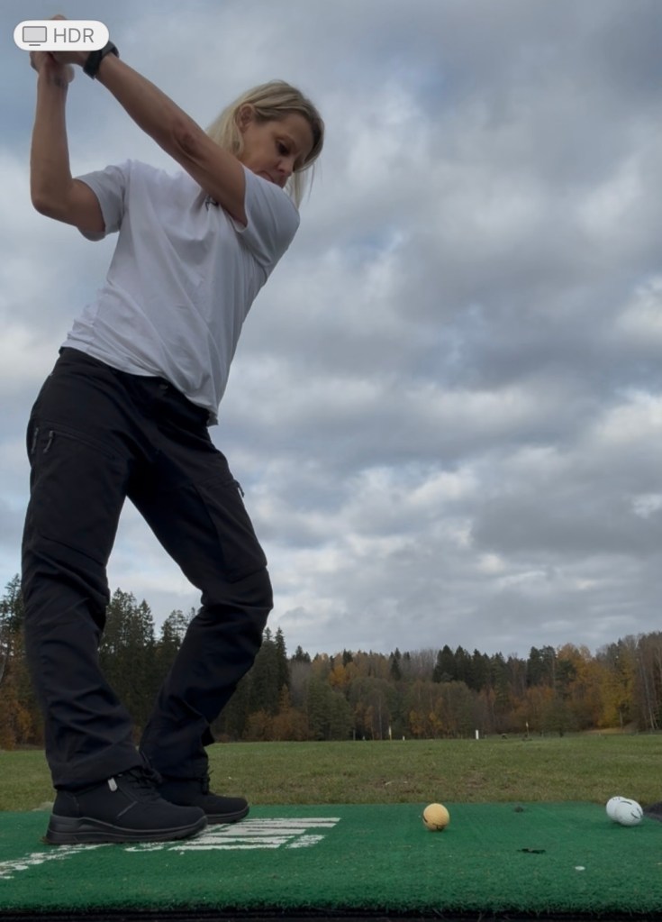 Vi avslutade med att lära oss att slå med driven inne i studion. Min skräck har alltid varit att slå med den klubban. Men med tydliga instruktioner från ledaren så gjorde jag framsteg.
