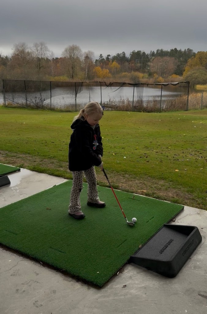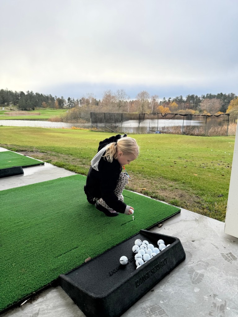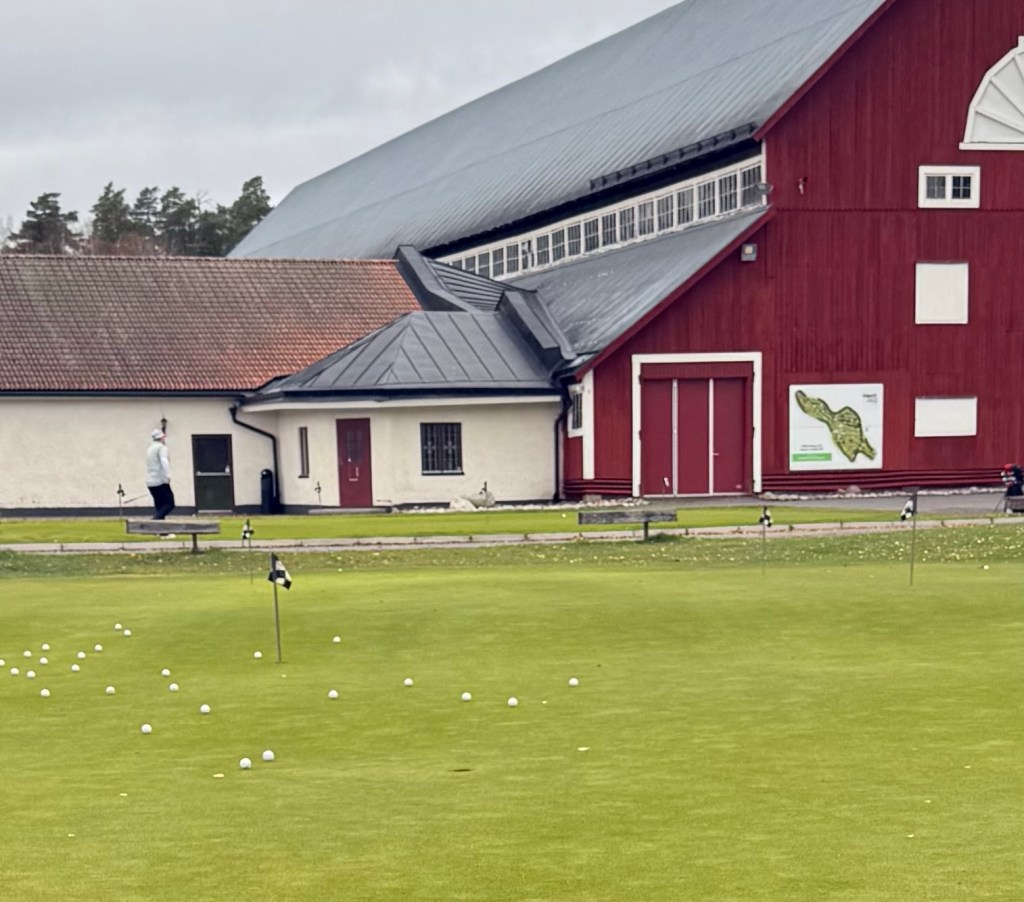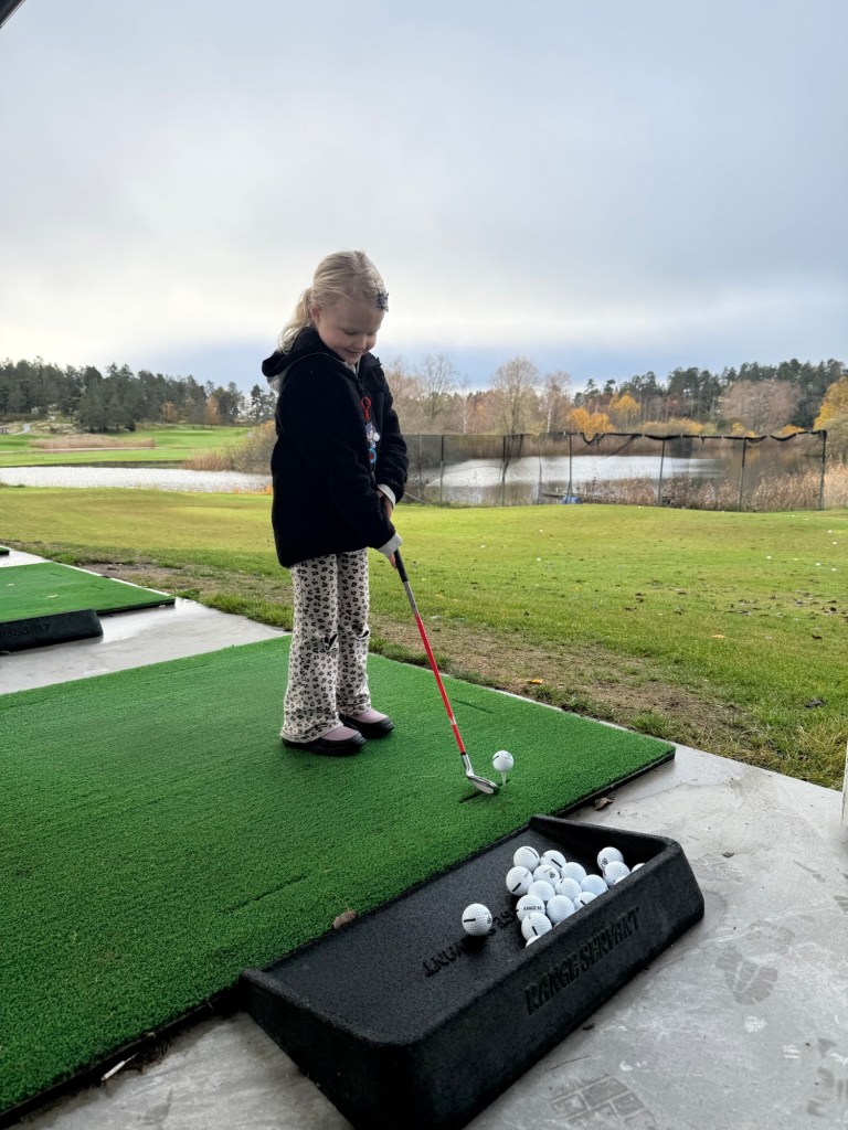 Vi åkte vidare till golfbanan bredvid hotellet och slog några bollar. Hade vädret varit bättre så hade vi tagit en promenad bort, men ingen sol och lite nordanvind.