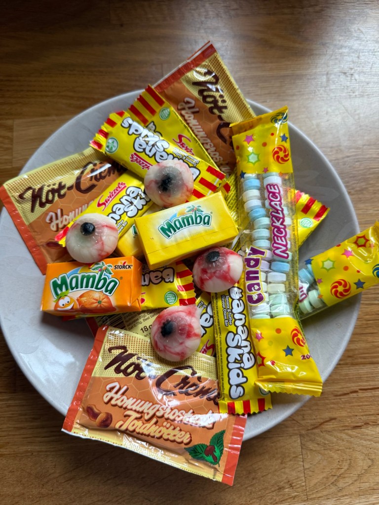 Förra året så var jag inte hemma och hade helt glömt bort att köpa hem godis så stackars Elias och Viggo fick ta emot alla barn som fick vända i dörren och blev utan godis.