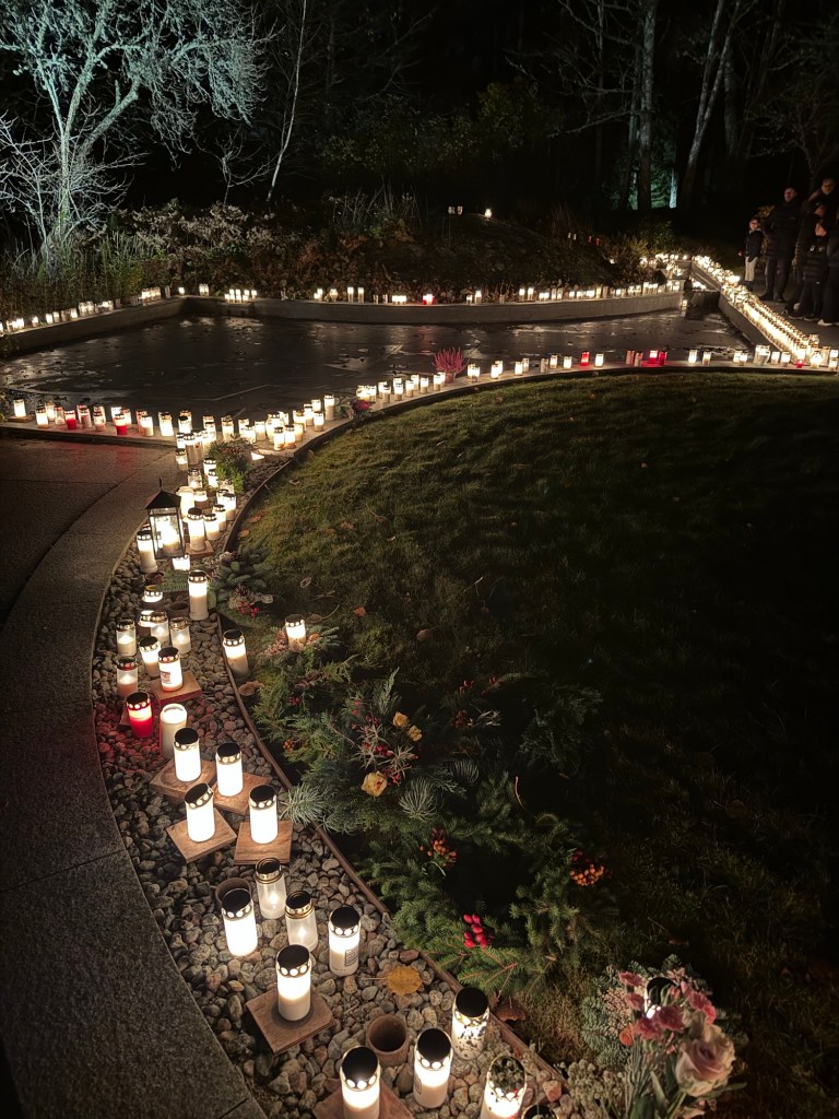 Minneslunden är så otroligt fin med alla ljus som lyser upp i mörkret. Jag gick dit bara för att titta och omfamnas av det stämningsfulla. Varje ljus påminner om någons liv men också det vackra i att minnas.