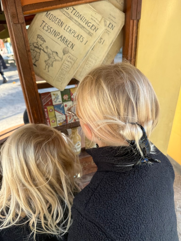 Lykke, Ilse och jag gick över till Tea & Alma för att leka en stund. Det blev fika med hembakta kanelbullar.